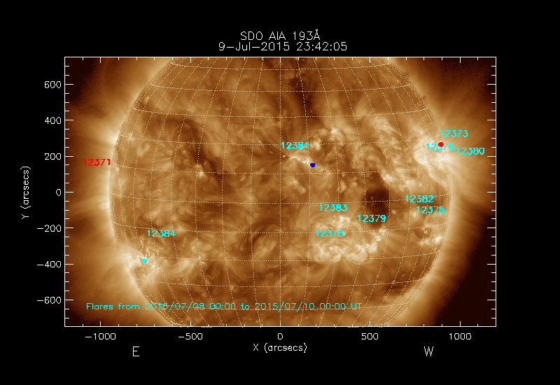 The numbers in turquoise designate Active Regions;