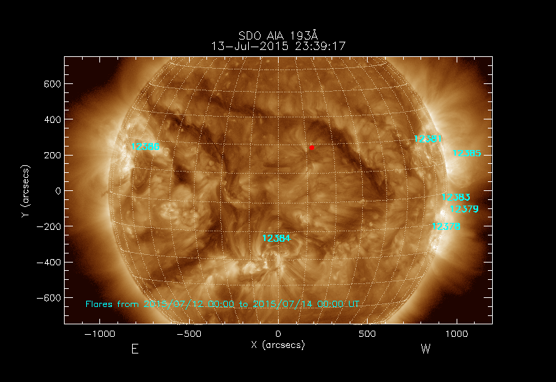 Note that some types of solar emission are more likely to be geo-effective if they originate from the western half to the disk