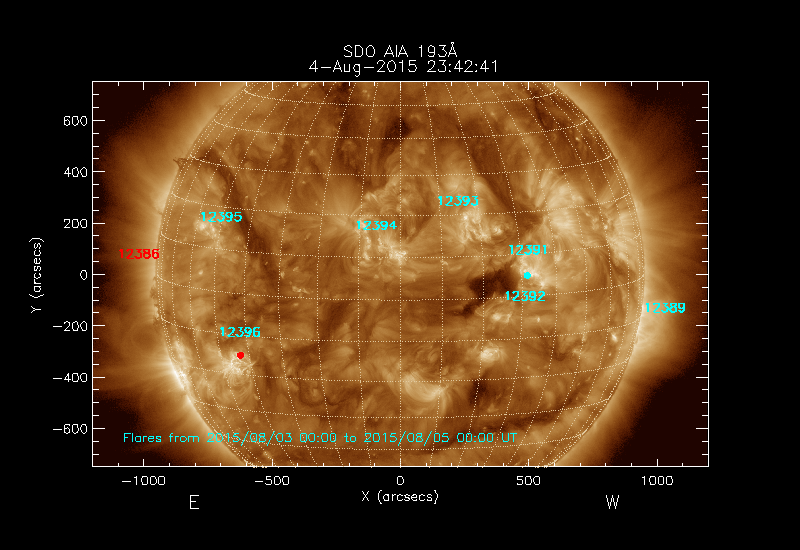 Note that some types of solar emission are more likely to be geo-effective if they originate from the western half to the disk