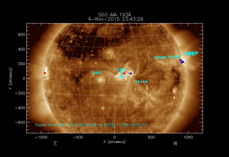 The numbers in turquoise designate Active Regions;