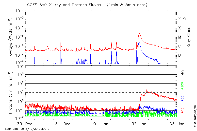 This page provides light-curves generated from GOES soft X-ray and Particle data for the date indicated at the top and the preceding three days.