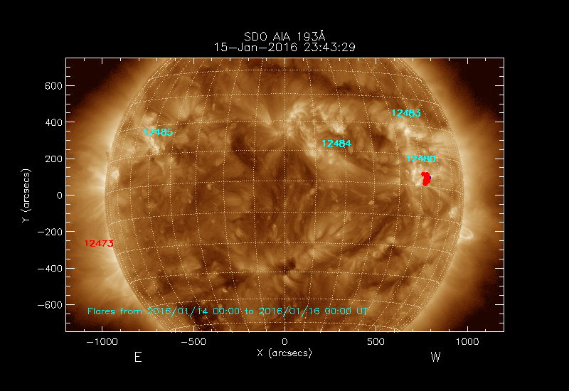 The numbers in turquoise designate Active Regions;