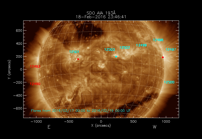 The numbers in turquoise designate Active Regions;