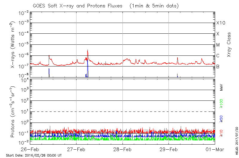 This page provides light-curves generated from GOES soft X-ray and Particle data for the date indicated at the top and the preceding three days.