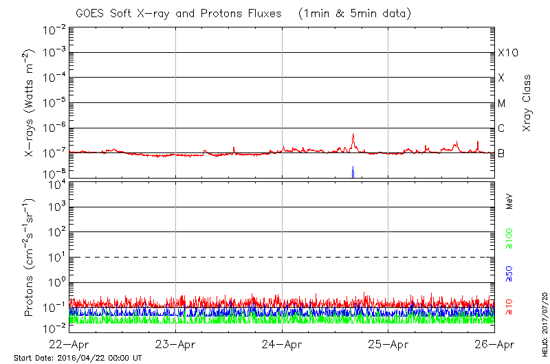 This page provides light-curves generated from GOES soft X-ray and Particle data for the date indicated at the top and the preceding three days.