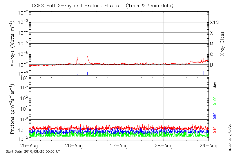 This page provides light-curves generated from GOES soft X-ray and Particle data for the date indicated at the top and the preceding three days.