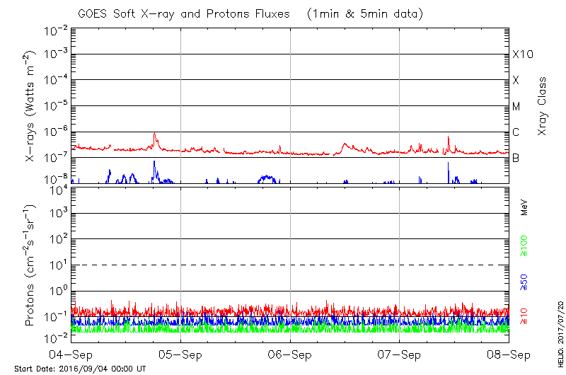 This page provides light-curves generated from GOES soft X-ray and Particle data for the date indicated at the top and the preceding three days.
