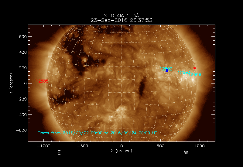 Note that some types of solar emission are more likely to be geo-effective if they originate from the western half to the disk