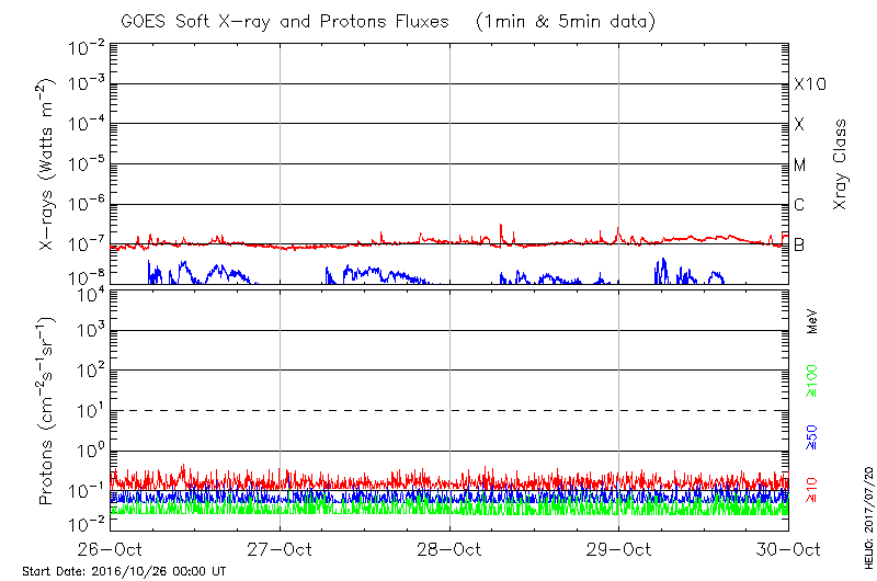 This page provides light-curves generated from GOES soft X-ray and Particle data for the date indicated at the top and the preceding three days.