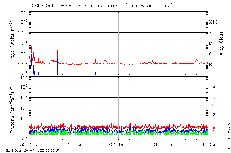 This page provides light-curves generated from GOES soft X-ray and Particle data for the date indicated at the top and the preceding three days.