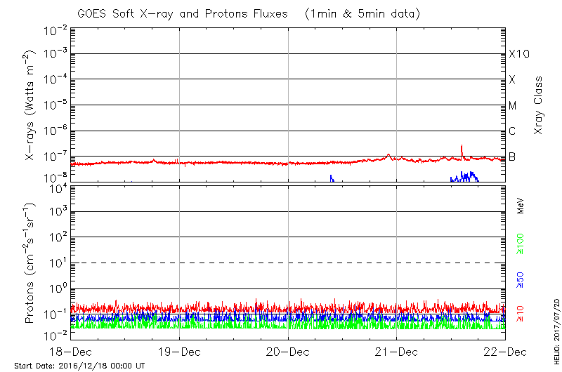 This page provides light-curves generated from GOES soft X-ray and Particle data for the date indicated at the top and the preceding three days.