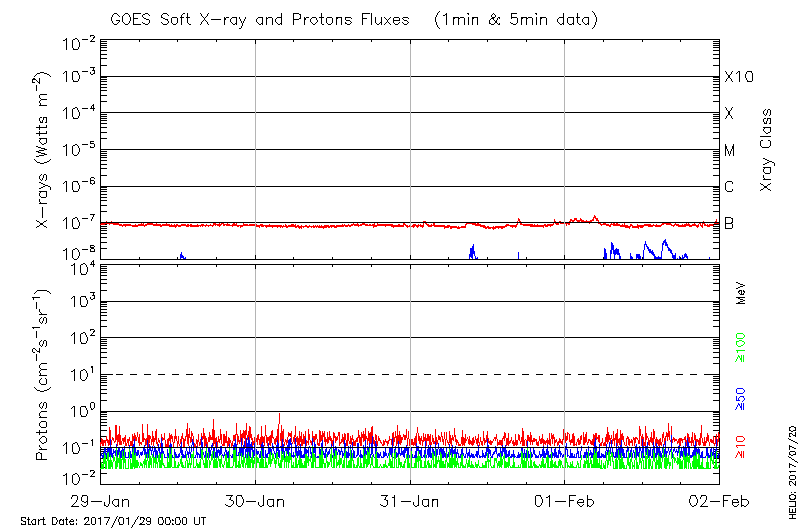 This page provides light-curves generated from GOES soft X-ray and Particle data for the date indicated at the top and the preceding three days.