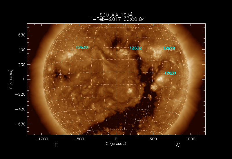 The numbers in turquoise designate Active Regions;