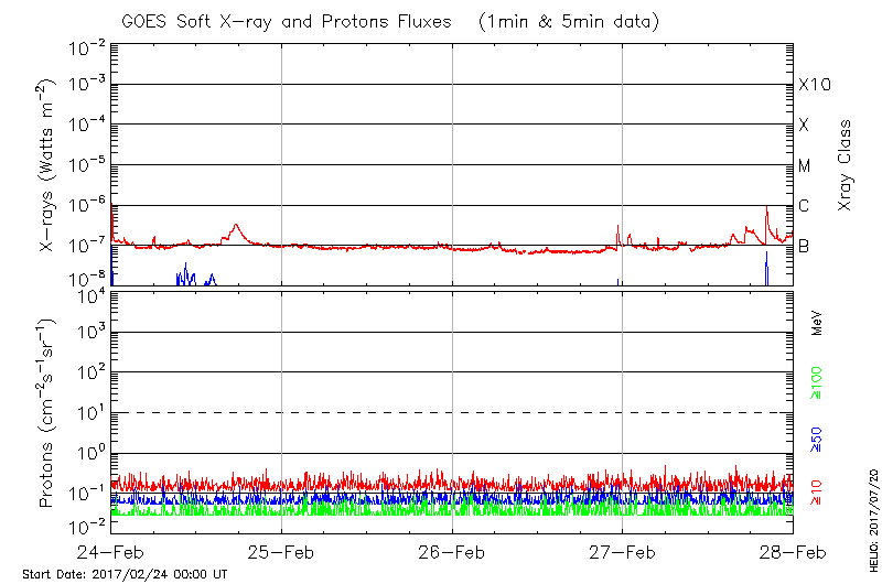 This page provides light-curves generated from GOES soft X-ray and Particle data for the date indicated at the top and the preceding three days.