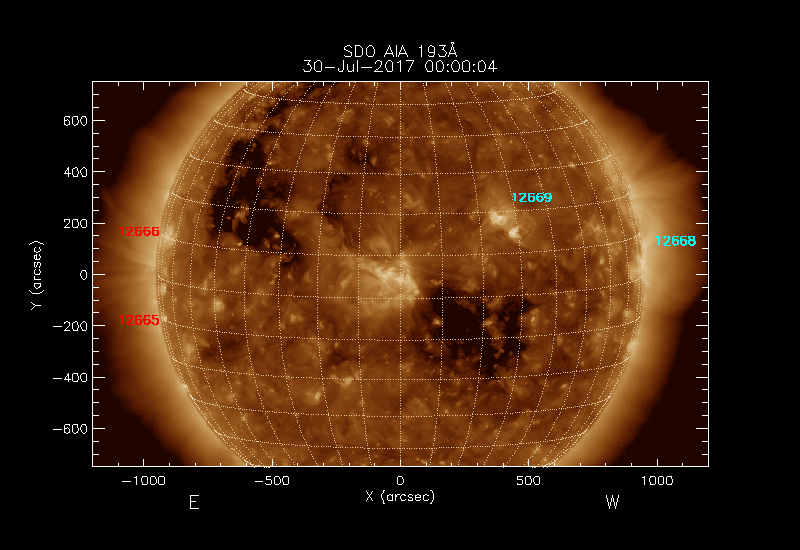 those in red (on the left hand side of the image) indicate where old Active Regions that could be returning.
