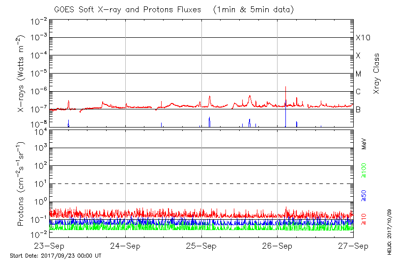 This page provides light-curves generated from GOES soft X-ray and Particle data for the date indicated at the top and the preceding three days.