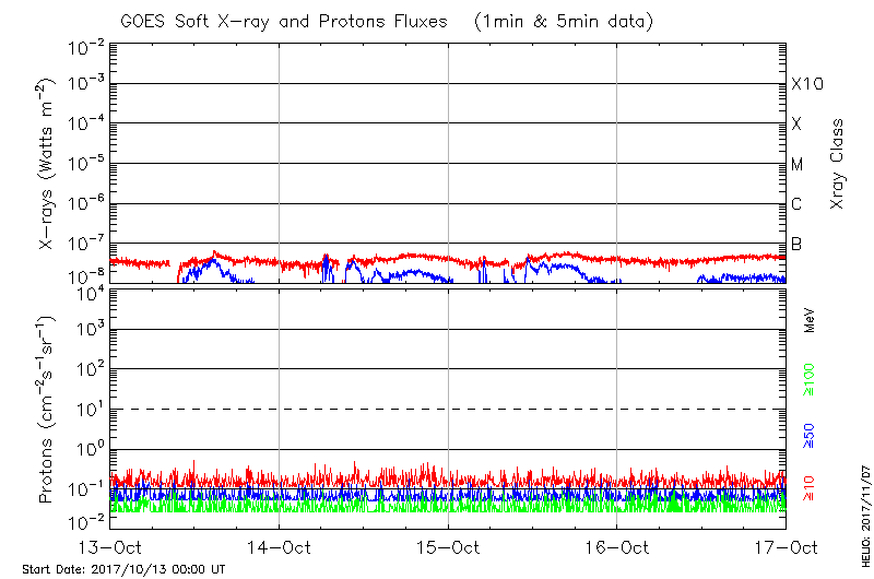 This page provides light-curves generated from GOES soft X-ray and Particle data for the date indicated at the top and the preceding three days.