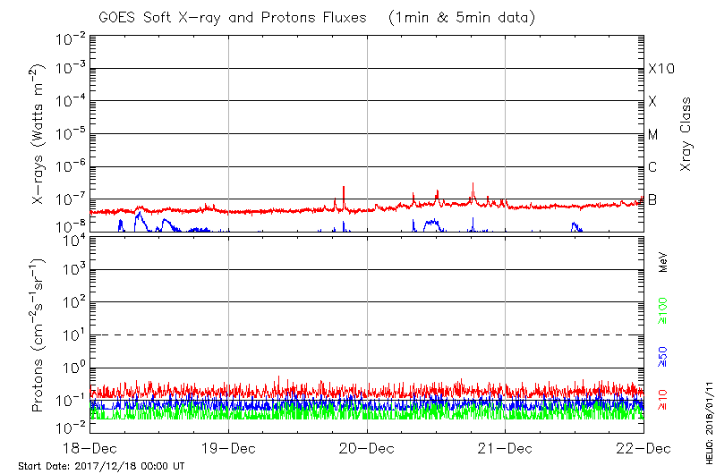This page provides light-curves generated from GOES soft X-ray and Particle data for the date indicated at the top and the preceding three days.