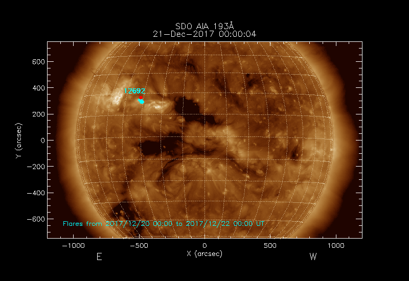 The locations of the flares over-plotted on the image are derived from the flare catalogue