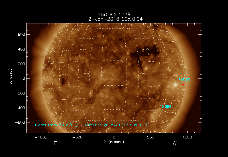 Note that some types of solar emission are more likely to be geo-effective if they originate from the western half to the disk