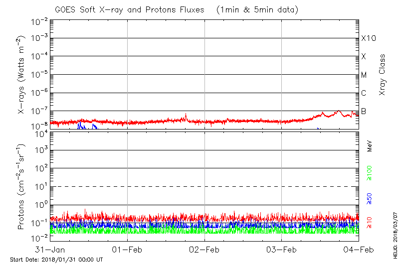 This page provides light-curves generated from GOES soft X-ray and Particle data for the date indicated at the top and the preceding three days.