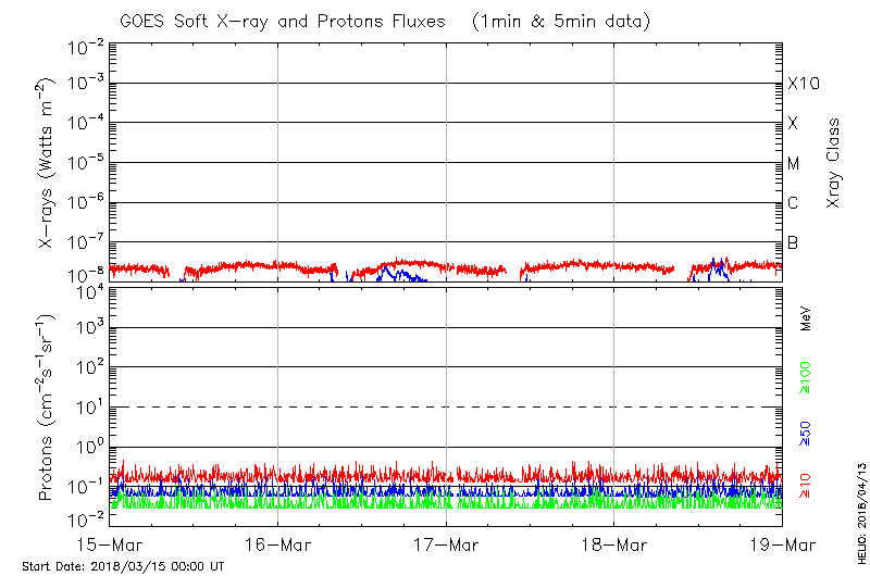 This page provides light-curves generated from GOES soft X-ray and Particle data for the date indicated at the top and the preceding three days.