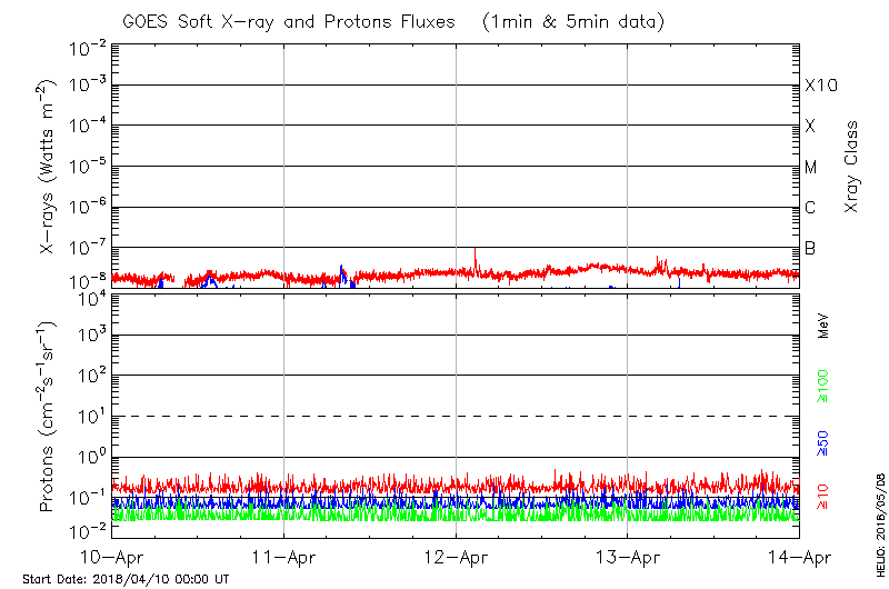 This page provides light-curves generated from GOES soft X-ray and Particle data for the date indicated at the top and the preceding three days.