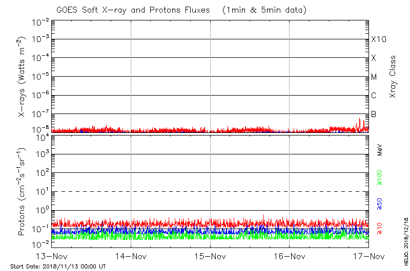 This page provides light-curves generated from GOES soft X-ray and Particle data for the date indicated at the top and the preceding three days.