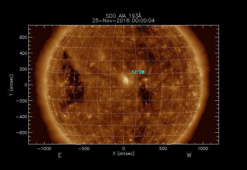Click on an Active Region plot to display the Region Report including the region evolution and flaring history. HEC Search for NOAA Active Regions (SRS) records for this date and the day before.