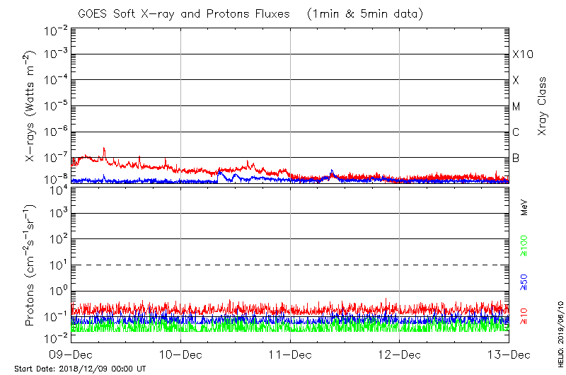 This page provides light-curves generated from GOES soft X-ray and Particle data for the date indicated at the top and the preceding three days.