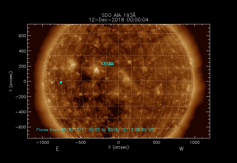 The locations of the flares over-plotted on the image are derived from the flare catalogue