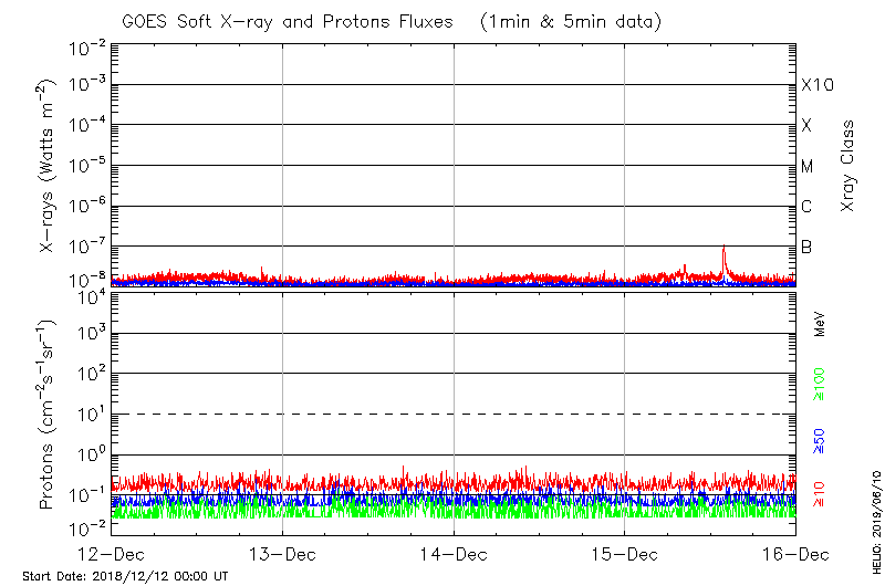 This page provides light-curves generated from GOES soft X-ray and Particle data for the date indicated at the top and the preceding three days.