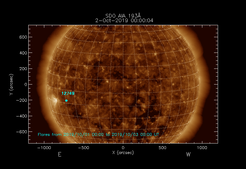 The locations of the flares over-plotted on the image are derived from the flare catalogue