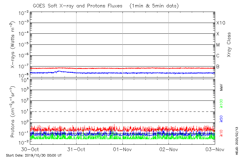 This page provides light-curves generated from GOES soft X-ray and Particle data for the date indicated at the top and the preceding three days.