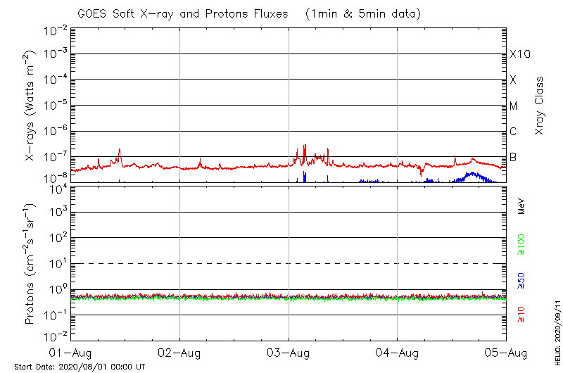 This page provides light-curves generated from GOES soft X-ray and Particle data for the date indicated at the top and the preceding three days.