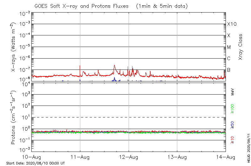 This page provides light-curves generated from GOES soft X-ray and Particle data for the date indicated at the top and the preceding three days.