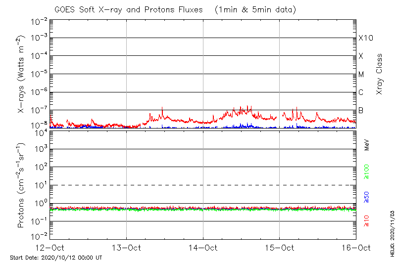 This page provides light-curves generated from GOES soft X-ray and Particle data for the date indicated at the top and the preceding three days.