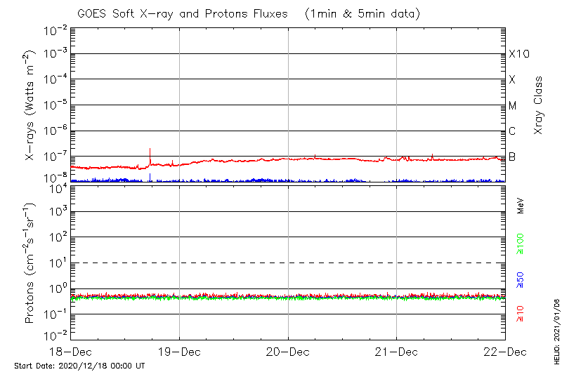 This page provides light-curves generated from GOES soft X-ray and Particle data for the date indicated at the top and the preceding three days.
