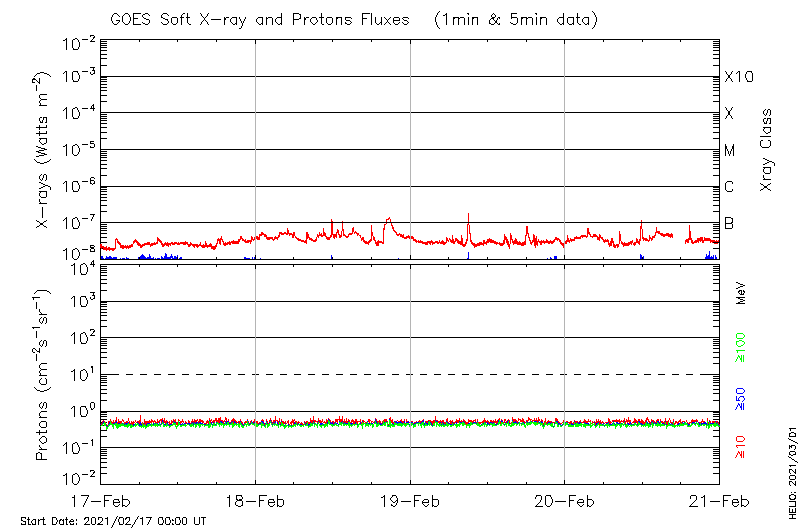 This page provides light-curves generated from GOES soft X-ray and Particle data for the date indicated at the top and the preceding three days.