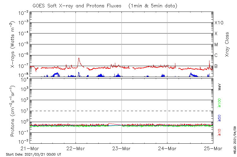 This page provides light-curves generated from GOES soft X-ray and Particle data for the date indicated at the top and the preceding three days.