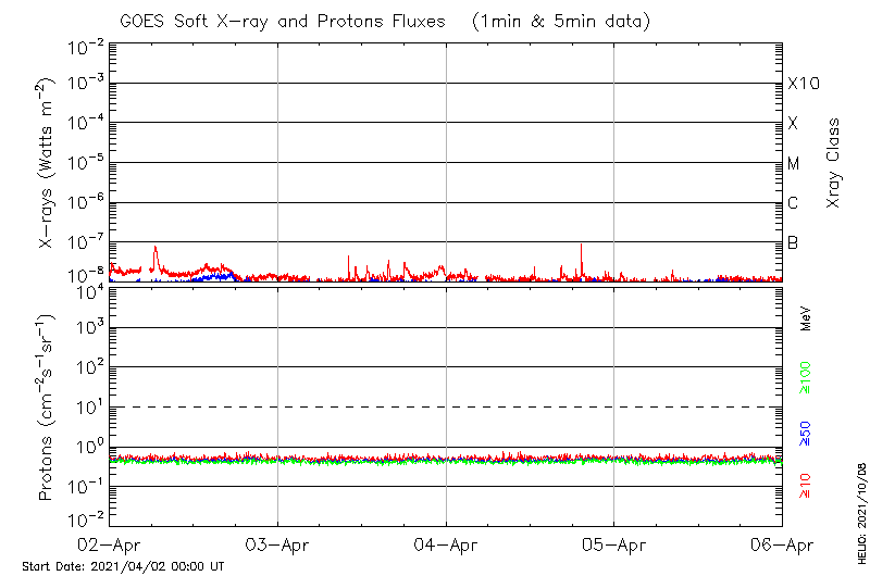 This page provides light-curves generated from GOES soft X-ray and Particle data for the date indicated at the top and the preceding three days.