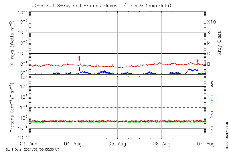 This page provides light-curves generated from GOES soft X-ray and Particle data for the date indicated at the top and the preceding three days.