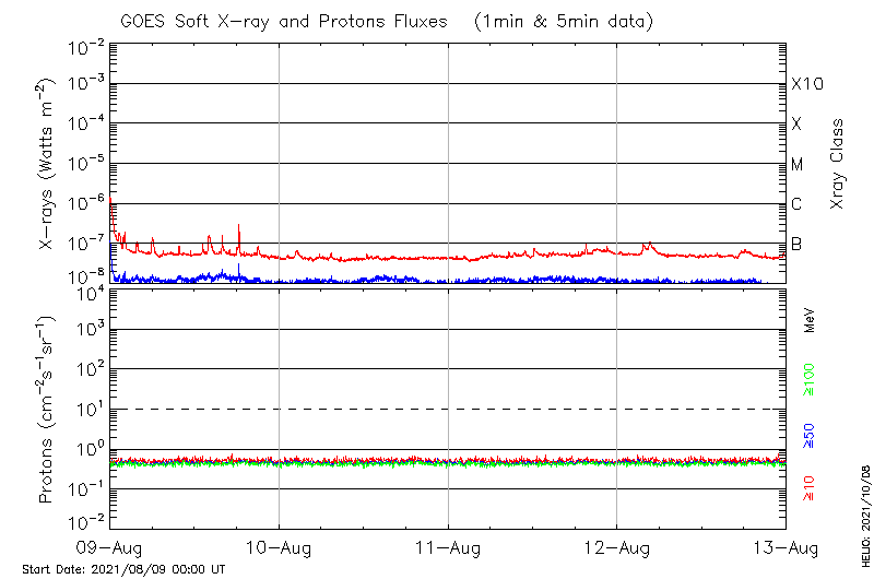 This page provides light-curves generated from GOES soft X-ray and Particle data for the date indicated at the top and the preceding three days.