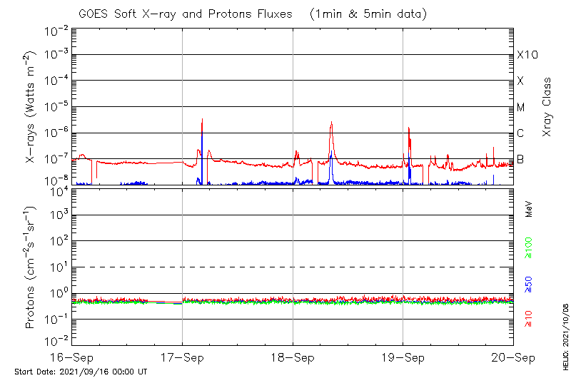 This page provides light-curves generated from GOES soft X-ray and Particle data for the date indicated at the top and the preceding three days.