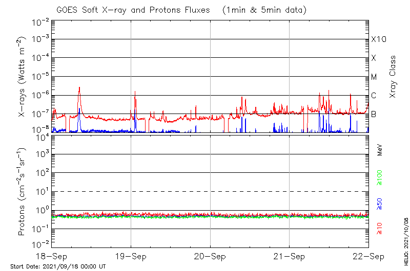 This page provides light-curves generated from GOES soft X-ray and Particle data for the date indicated at the top and the preceding three days.