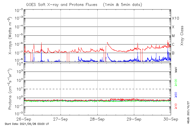 This page provides light-curves generated from GOES soft X-ray and Particle data for the date indicated at the top and the preceding three days.