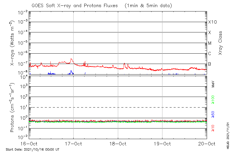 This page provides light-curves generated from GOES soft X-ray and Particle data for the date indicated at the top and the preceding three days.