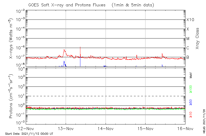 This page provides light-curves generated from GOES soft X-ray and Particle data for the date indicated at the top and the preceding three days.