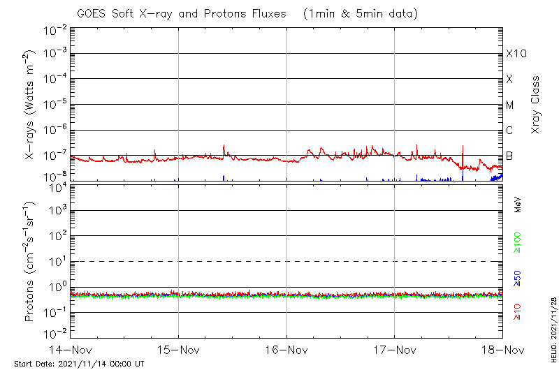 This page provides light-curves generated from GOES soft X-ray and Particle data for the date indicated at the top and the preceding three days.