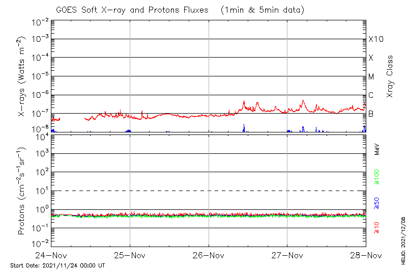This page provides light-curves generated from GOES soft X-ray and Particle data for the date indicated at the top and the preceding three days.